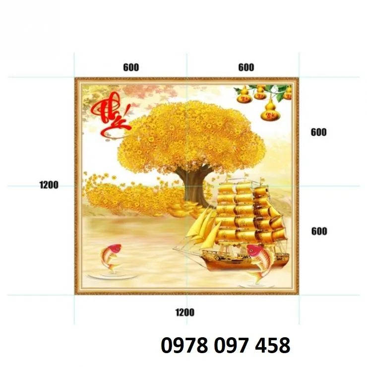 Tranh phong thủy - cây tài lộc , thuyền buồm vàng